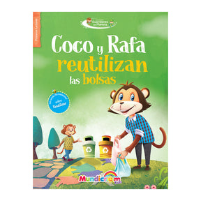 Los monitos, Coco y Rafa, comienzan a reutilizar las bolsas cuando toman conciencia de que las plásticas tardan muchísimos años en degradarse, y que las de papel se relacionan directamente con la tala de los árboles, gasto de agua y energía.